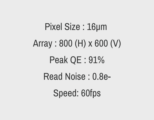 The Aries drives sensitivity through high QE and sub electron read noise. With up to 95% QE on large formats the Aries is perfect for low photon experiments at speeds of up to 150fps with 10MP.