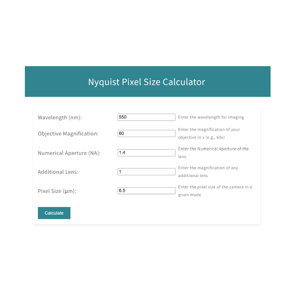 Calculate the theoretical resolution of your microscope objective and camera.
