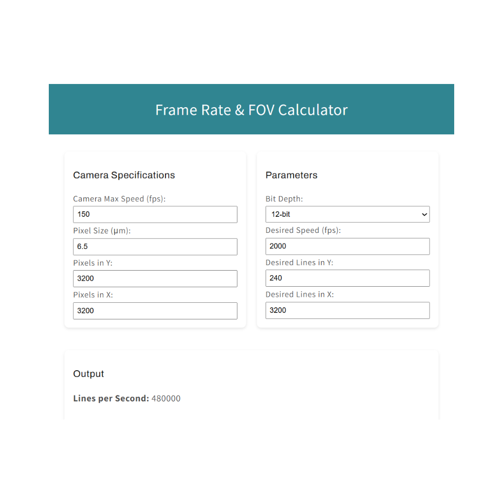 Calculate camera available based on a desired speed or calculate speed based on a desired area.