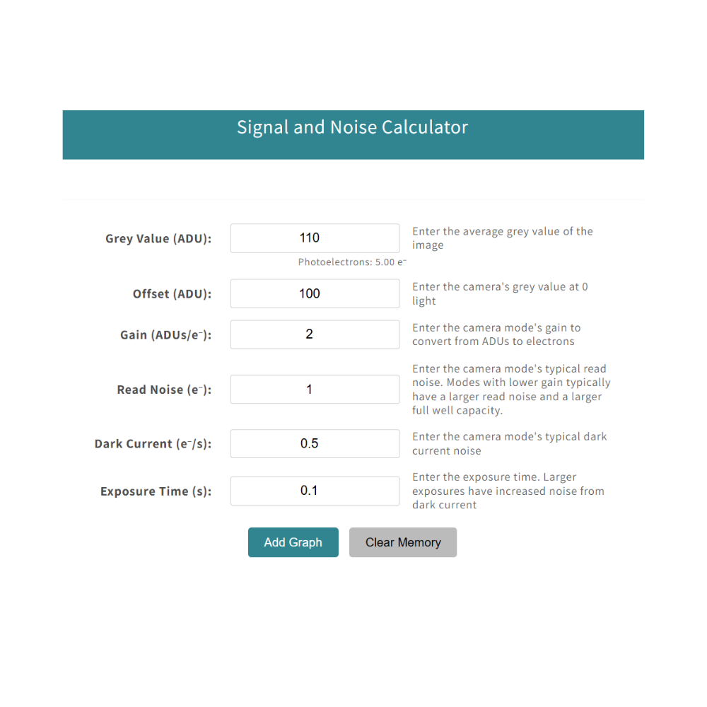 This comparison tool allows you to compare signal to noise of our cameras based on assumed light fluxes per pixel.
